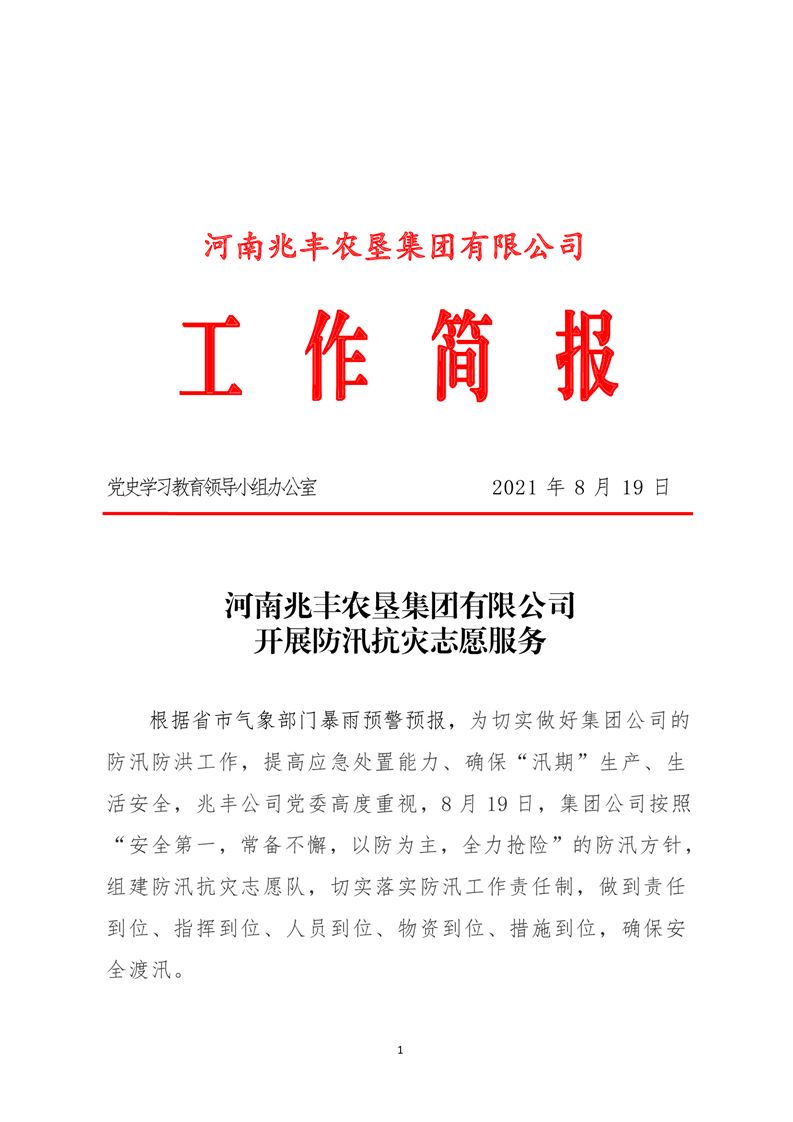 · 【我為職工辦實事】河南兆豐農(nóng)墾集團有限公司 開展防汛抗災志愿服務