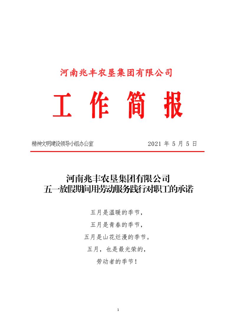 · 河南兆豐農(nóng)墾集團(tuán)有限公司 五一放假期間用勞動(dòng)服務(wù)踐行對(duì)職工的承諾
