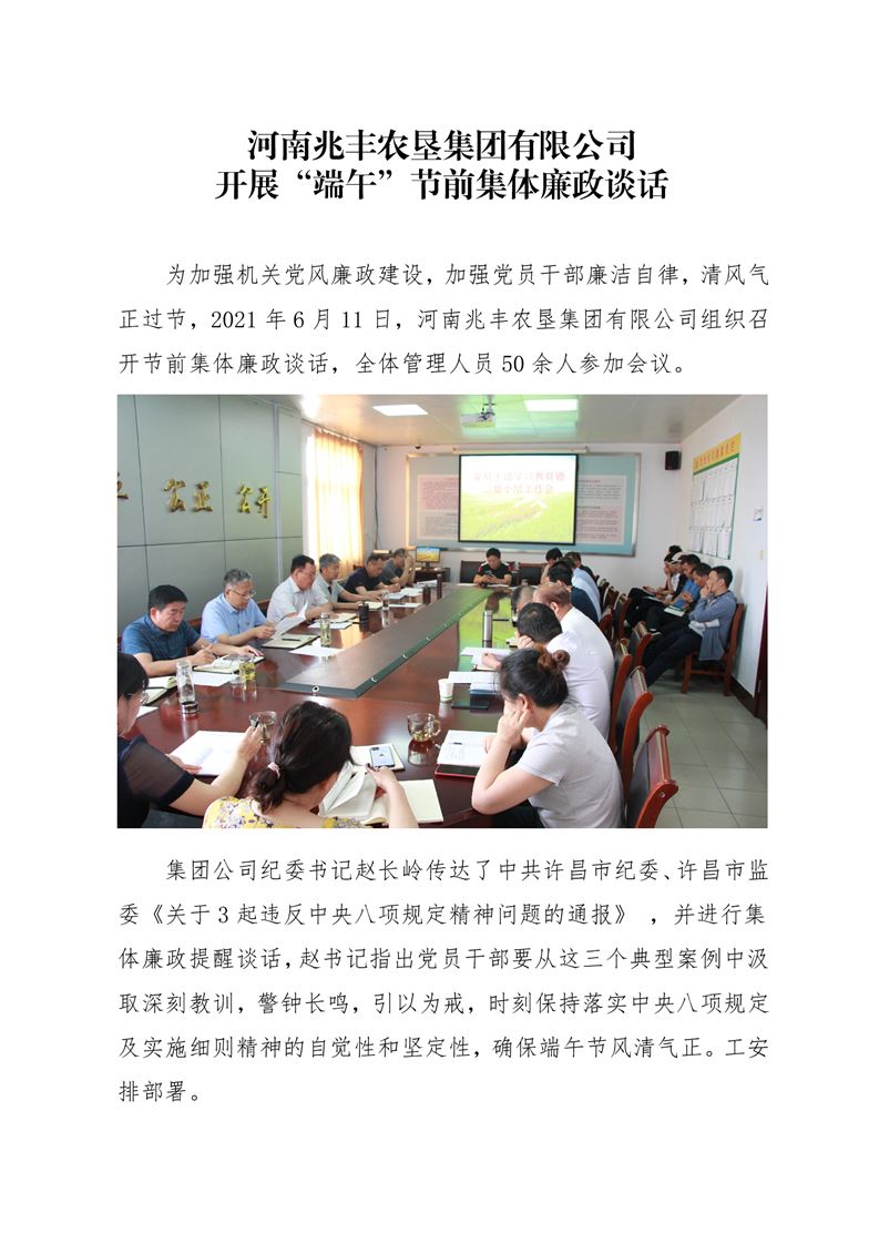 · 河南兆豐農(nóng)墾集團(tuán)有限公司 開展“端午”節(jié)前集體廉政談話
