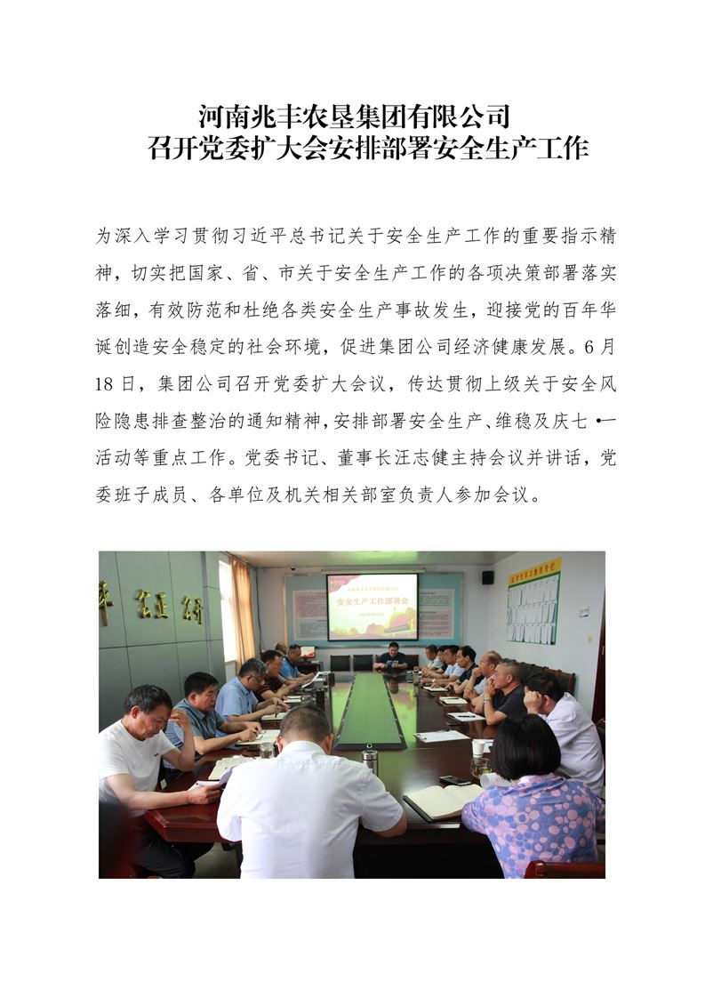 · 河南兆豐農(nóng)墾集團有限公司 召開黨委擴大會安排部署安全生產(chǎn)工作