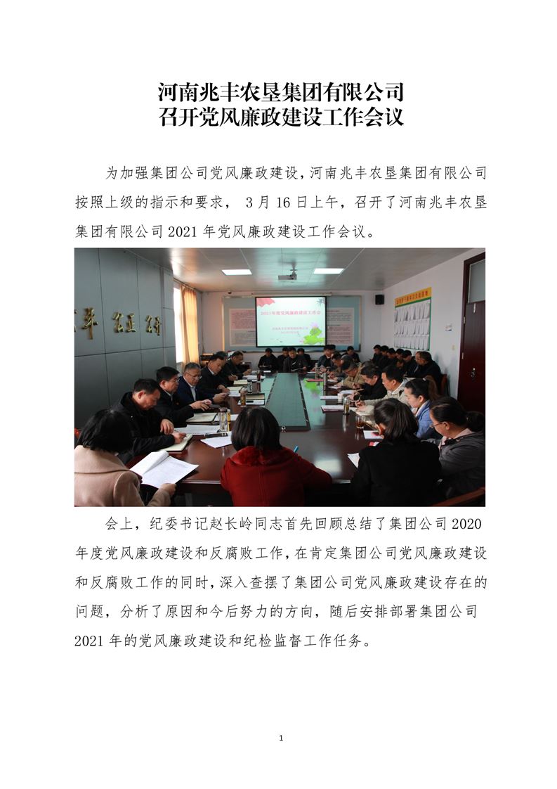 · 河南兆豐農(nóng)墾集團有限公司 召開黨風廉政建設工作會議