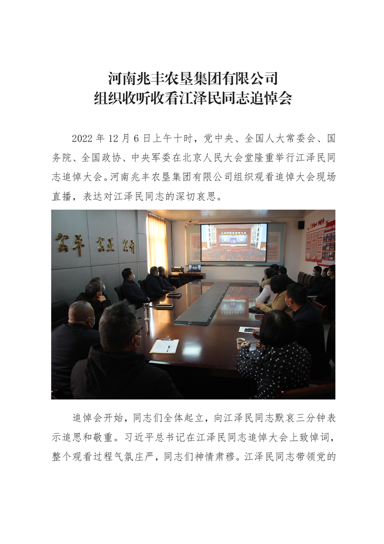 · 河南兆豐農(nóng)墾集團(tuán)有限公司 組織收聽收看江澤民同志追悼會(huì)