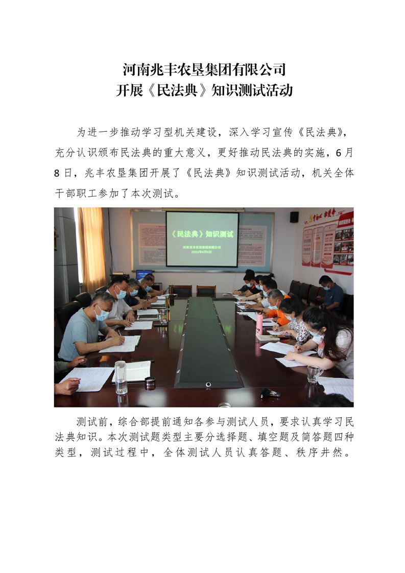 · 河南兆豐農墾集團有限公司 開展《民法典》知識測試活動