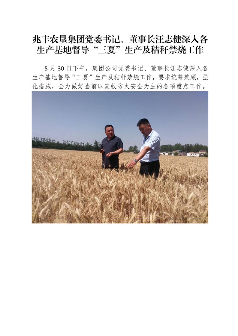 · 河南兆豐農(nóng)墾集團有限公司黨委書記、董事長汪志健深入各生產(chǎn)基地督導“三夏”生產(chǎn)及秸稈禁燒工作