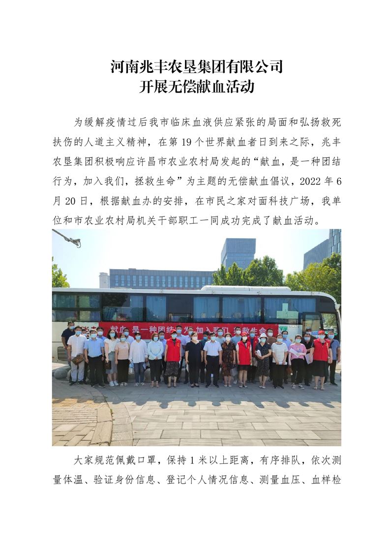 · 河南兆豐農(nóng)墾集團有限公司 開展無償獻血活動