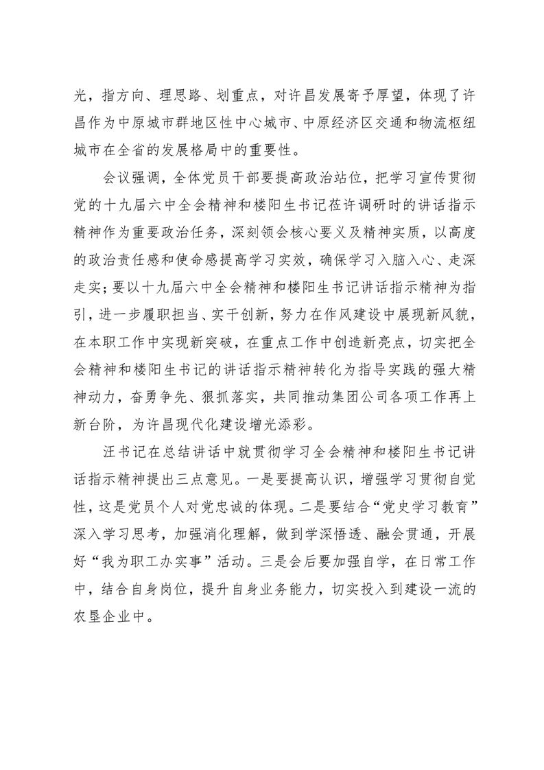 · 河南兆豐農(nóng)墾集團有限公司 貫徹學習十九屆六中全會精神
