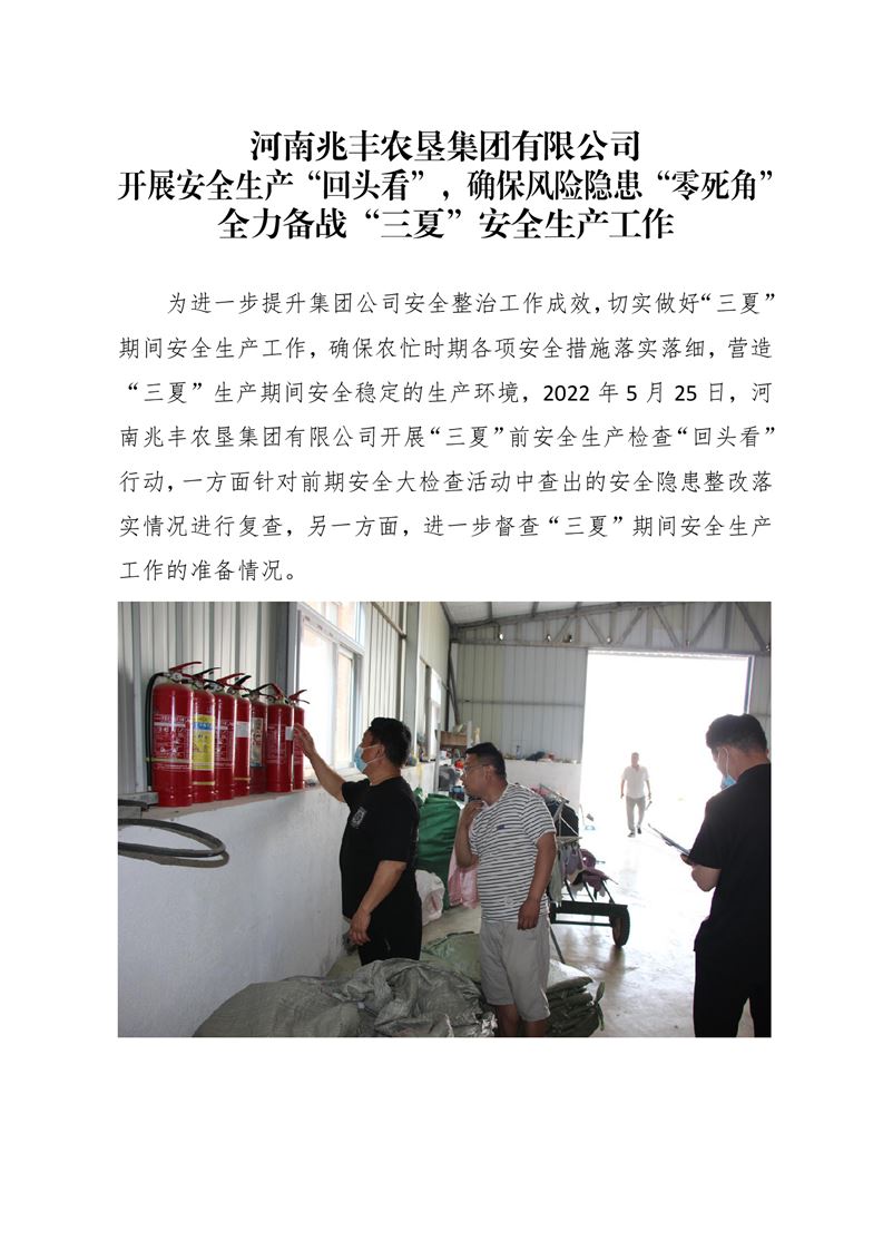 · 河南兆豐農(nóng)墾集團(tuán)有限公司 開展安全生產(chǎn)“回頭看”,確保風(fēng)險(xiǎn)隱患“零死角”全力備戰(zhàn)“三夏”安全生產(chǎn)工作