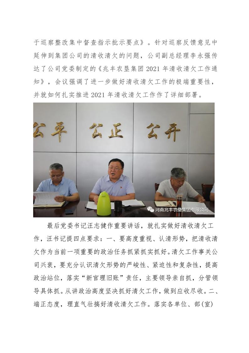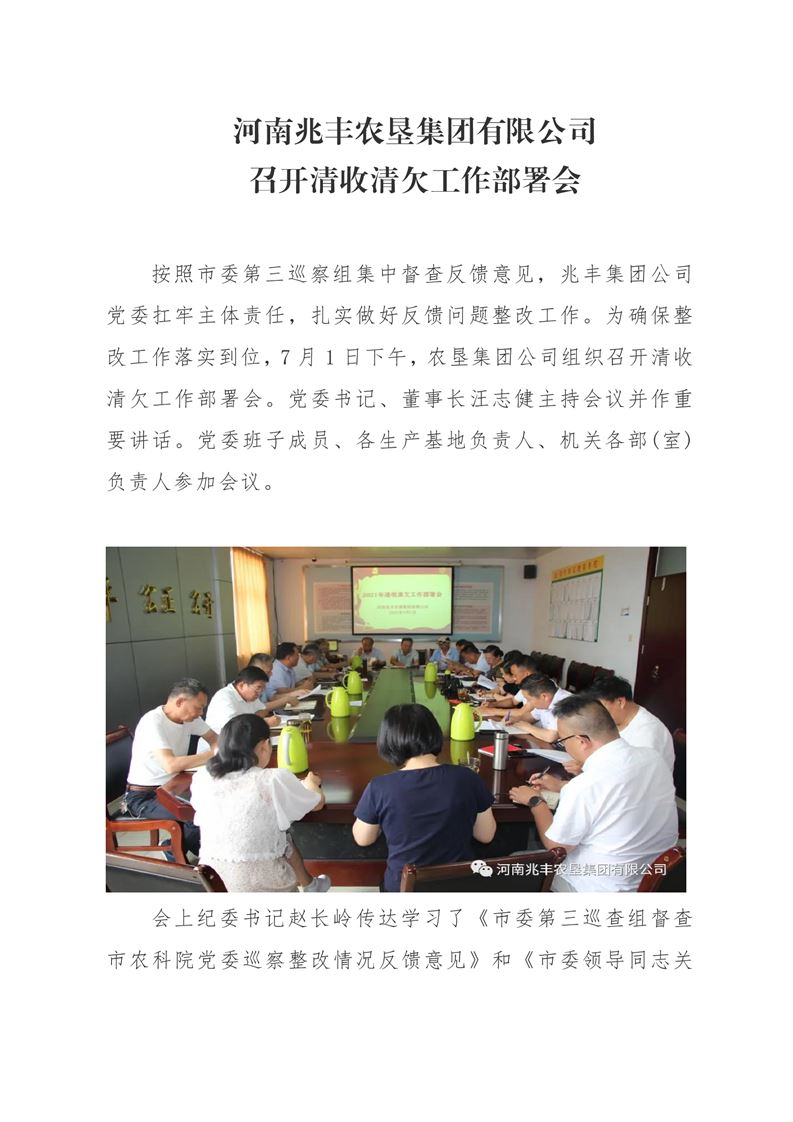 · 河南兆豐農(nóng)墾集團有限公司 召開清收清欠工作部署會