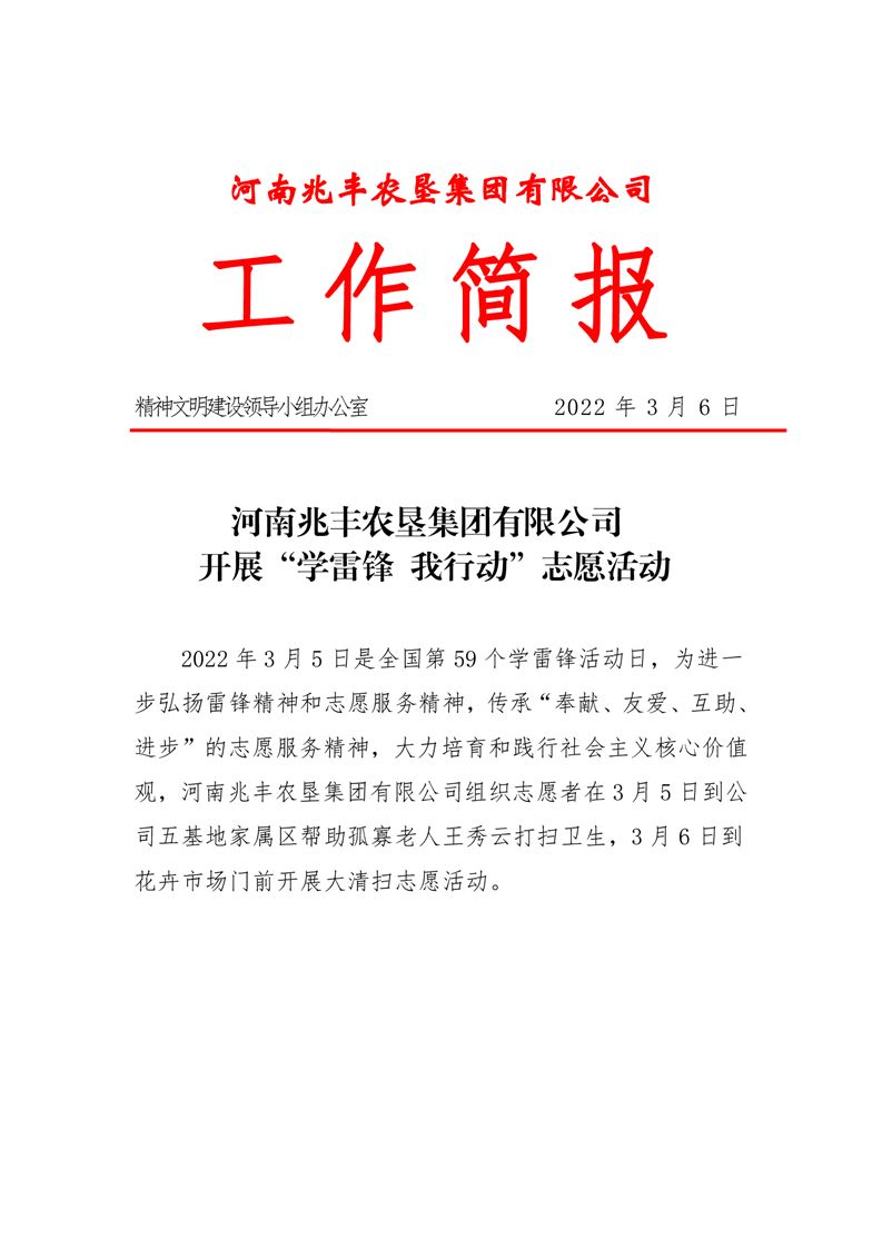 · 河南兆豐農(nóng)墾集團(tuán)有限公司 開(kāi)展“學(xué)雷鋒 我行動(dòng)”志愿活動(dòng)