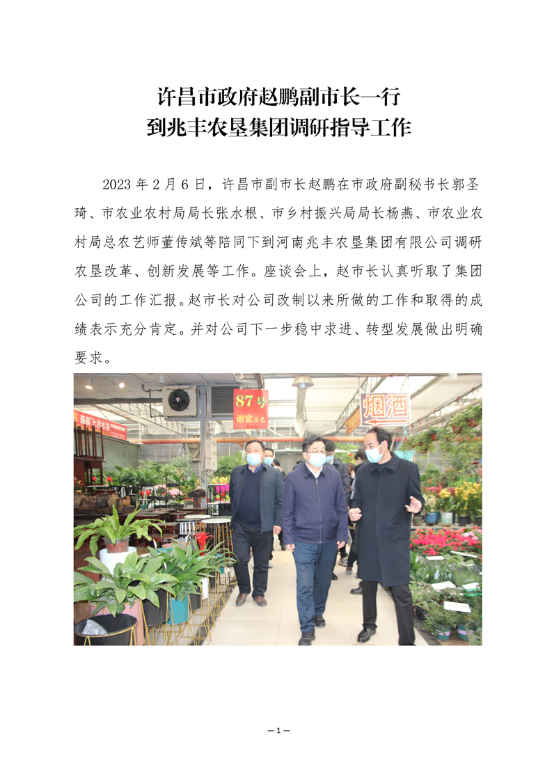 · 許昌市政府趙鵬副市長一行 到兆豐農(nóng)墾集團(tuán)調(diào)研指導(dǎo)工作