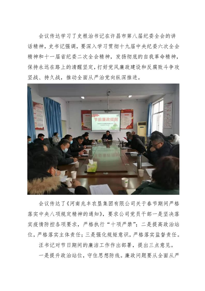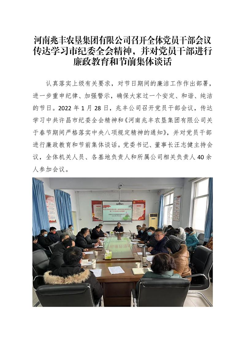 · 河南兆豐農(nóng)墾集團(tuán)有限公司 召開全體黨員干部會(huì)議傳達(dá)學(xué)習(xí)市紀(jì)委全會(huì)精神,并對(duì)黨員干部進(jìn)行廉政教育和節(jié)前集體談話