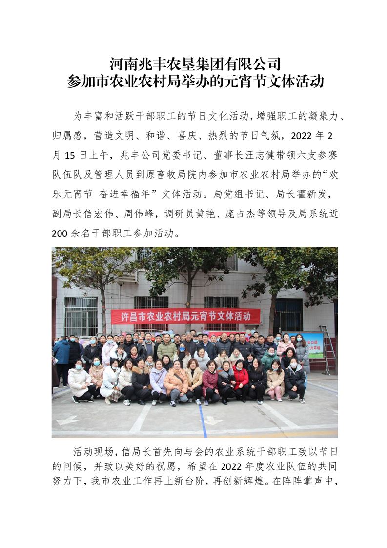 · 河南兆豐農(nóng)墾集團(tuán)有限公司 參加市農(nóng)業(yè)農(nóng)村局舉辦的元宵節(jié)文體活動(dòng)