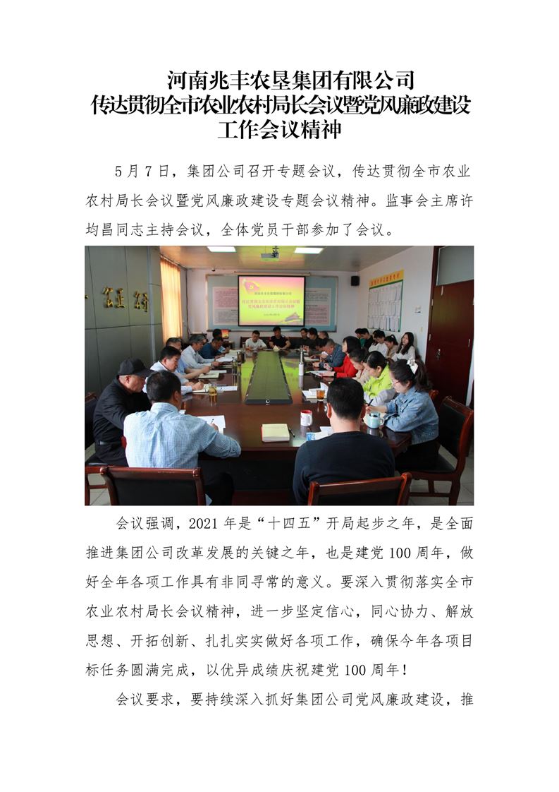 · 河南兆豐農(nóng)墾集團有限公司 傳達貫徹全市農(nóng)業(yè)農(nóng)村局長會議暨黨風廉政建設工作會議精神