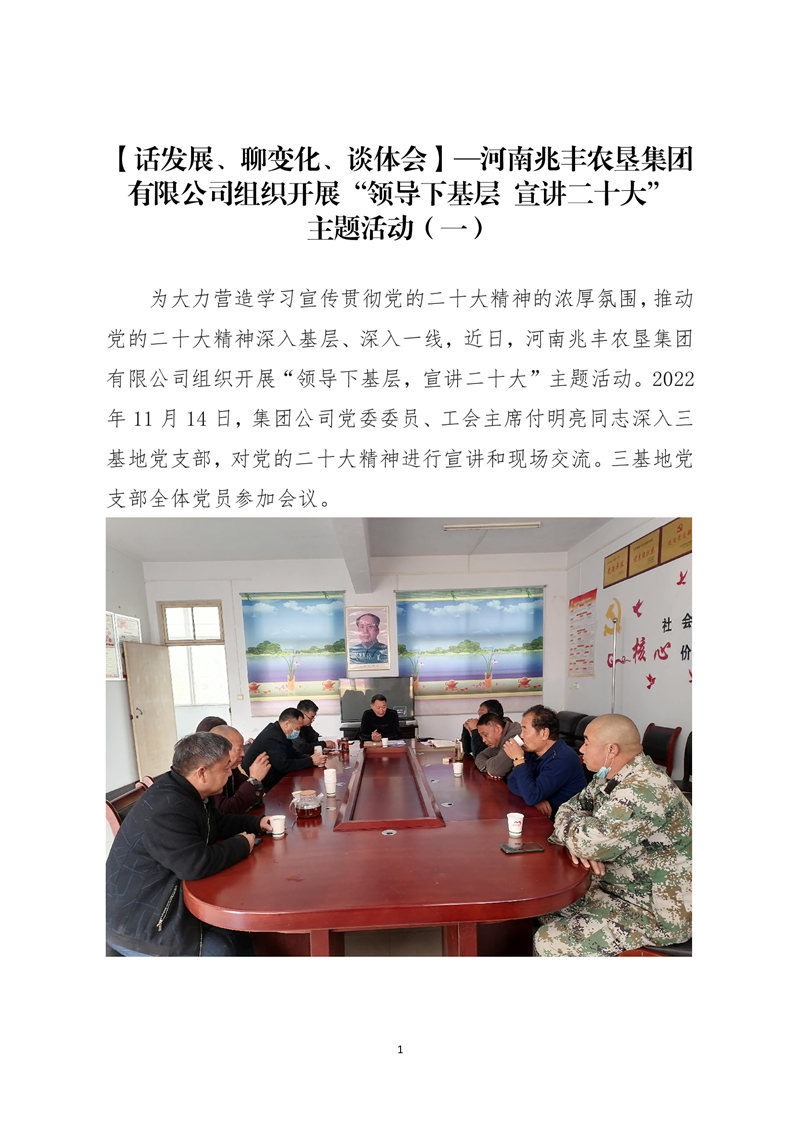 · 【話發(fā)展、聊變化、談體會(huì)】—河南兆豐農(nóng)墾集團(tuán)有限公司組織開(kāi)展“領(lǐng)導(dǎo)下基層 宣講二十大” 主題活動(dòng)(一)