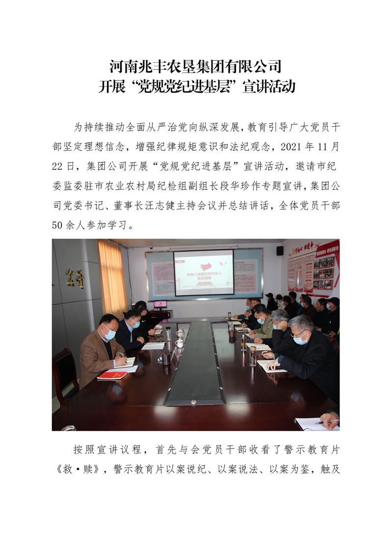 · 河南兆豐農(nóng)墾集團有限公司 開展“黨規(guī)黨紀進基層”宣講活動
