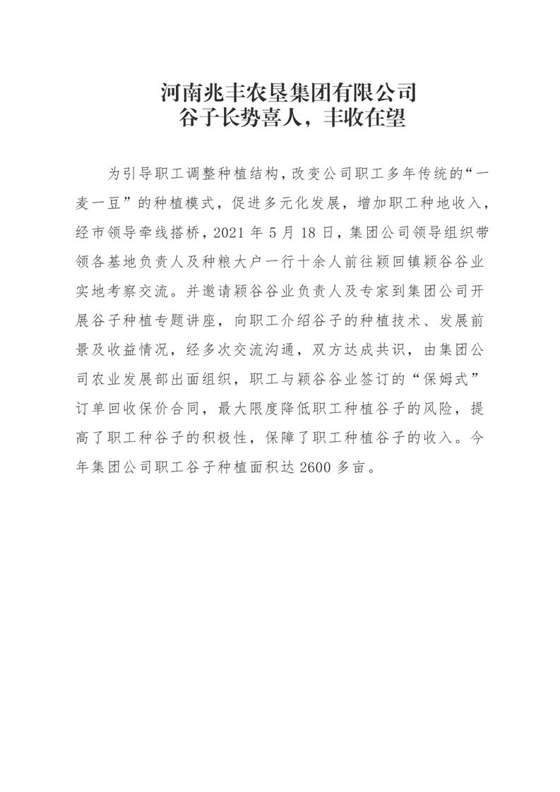 · 河南兆豐農(nóng)墾集團(tuán)有限公司 谷子長(zhǎng)勢(shì)喜人,豐收在望