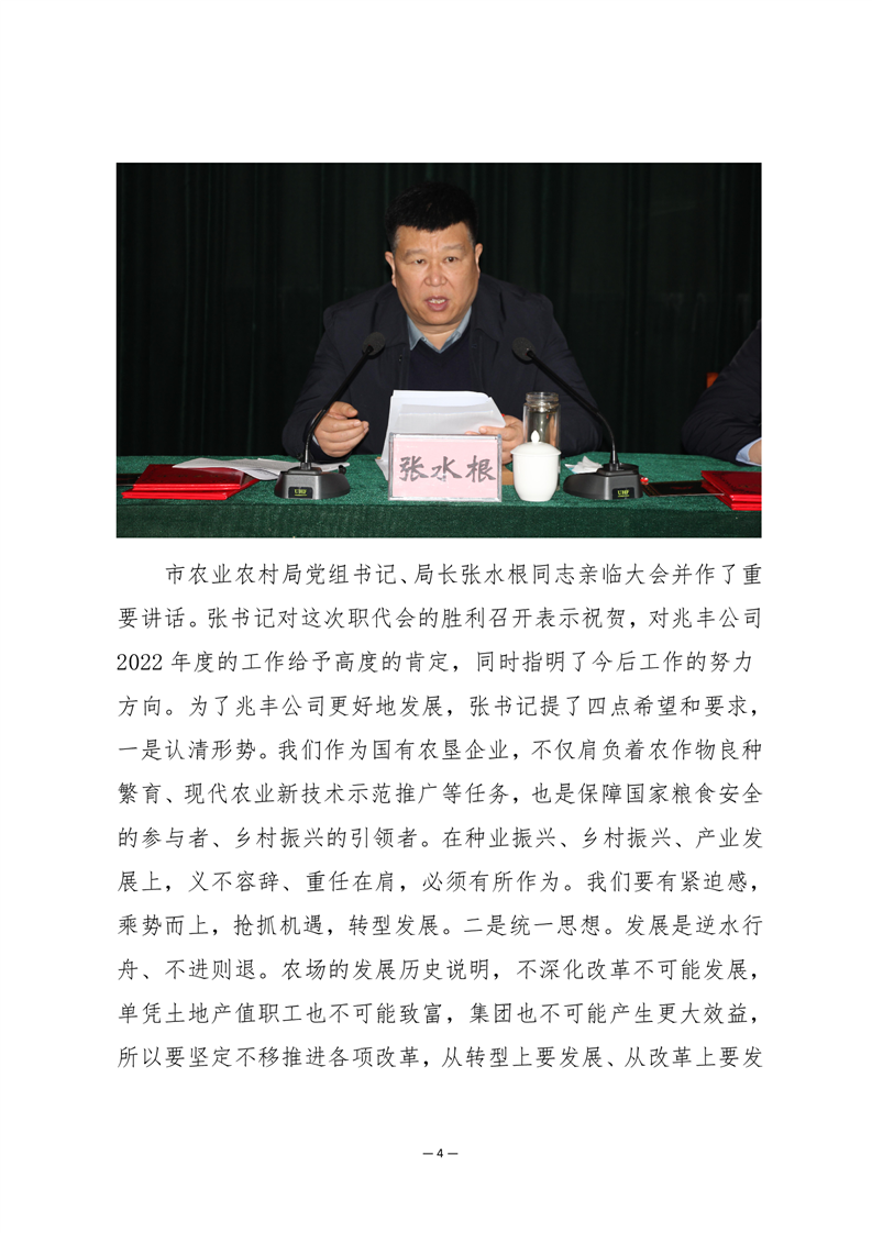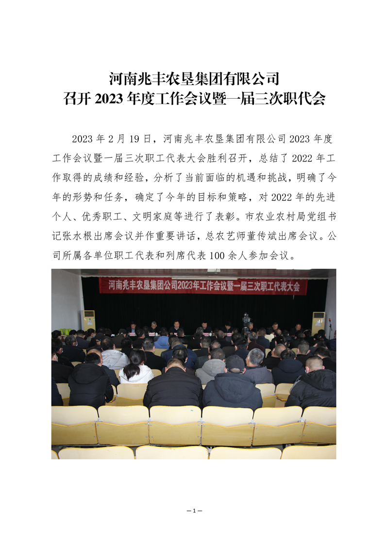 · 河南兆豐農(nóng)墾集團(tuán)有限公司組織召開一屆三次職工代表大會(huì)