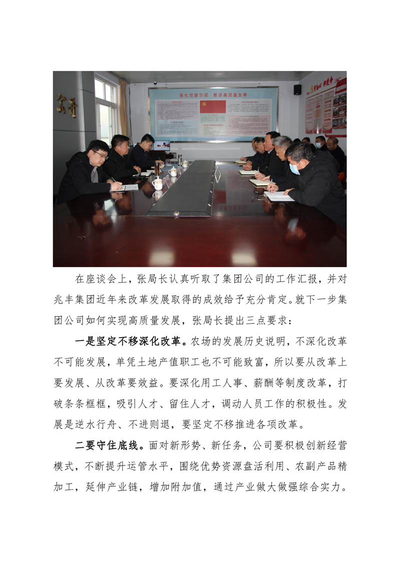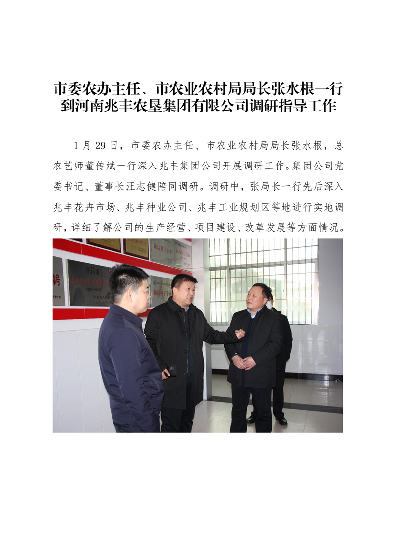 · 市委農(nóng)辦主任、市農(nóng)業(yè)農(nóng)村局局長張水根一行到河南兆豐農(nóng)墾集團有限公司調(diào)研指導工作