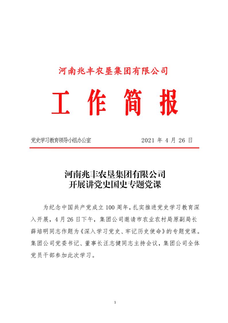· 河南兆豐農(nóng)墾集團(tuán)有限公司 舉辦第一次黨史學(xué)習(xí)教育專題黨課