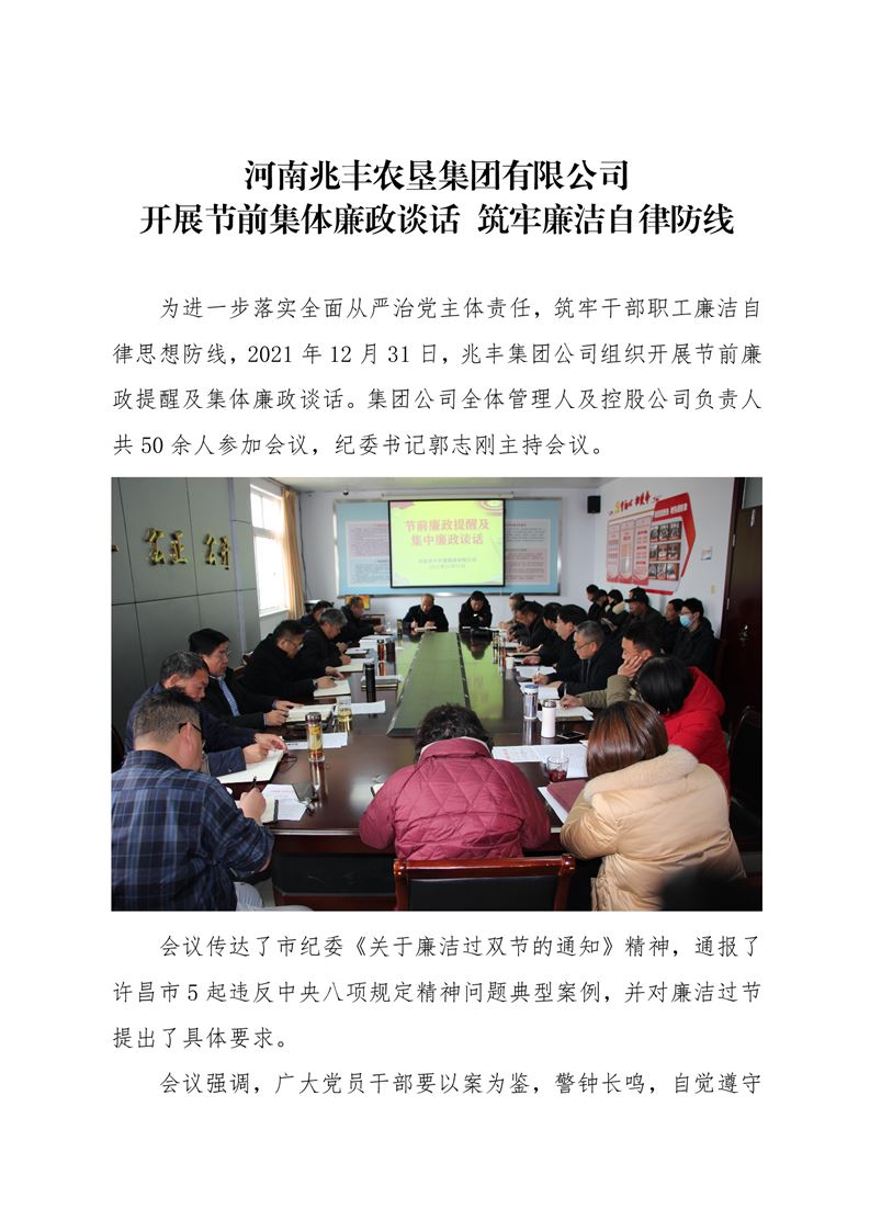 · 河南兆豐農(nóng)墾集團有限公司 開展節(jié)前集體廉政談話 筑牢廉潔自律防線